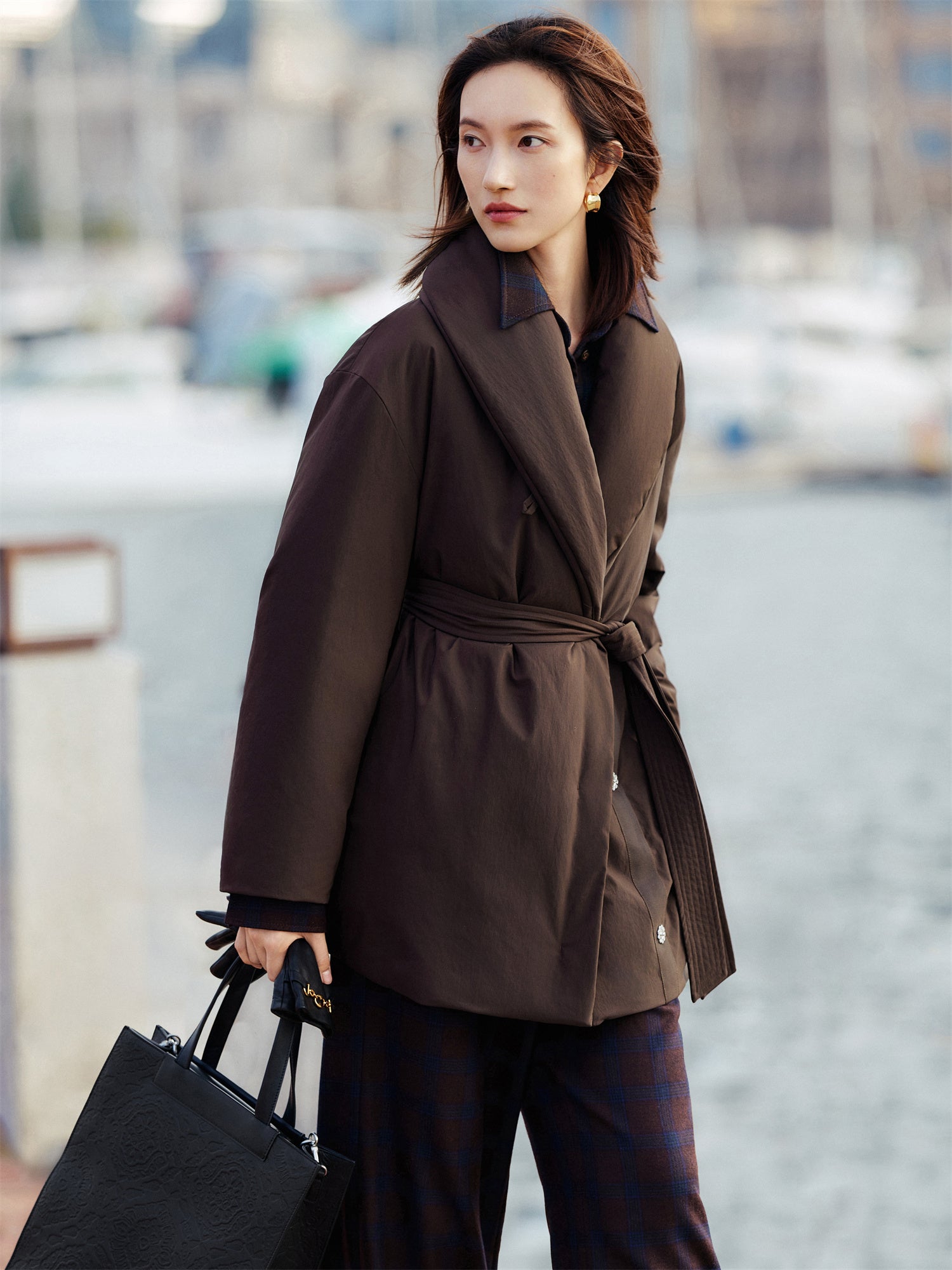 EP YAYING Shawl-Collar Belted Down Coat EGKIAY921AK