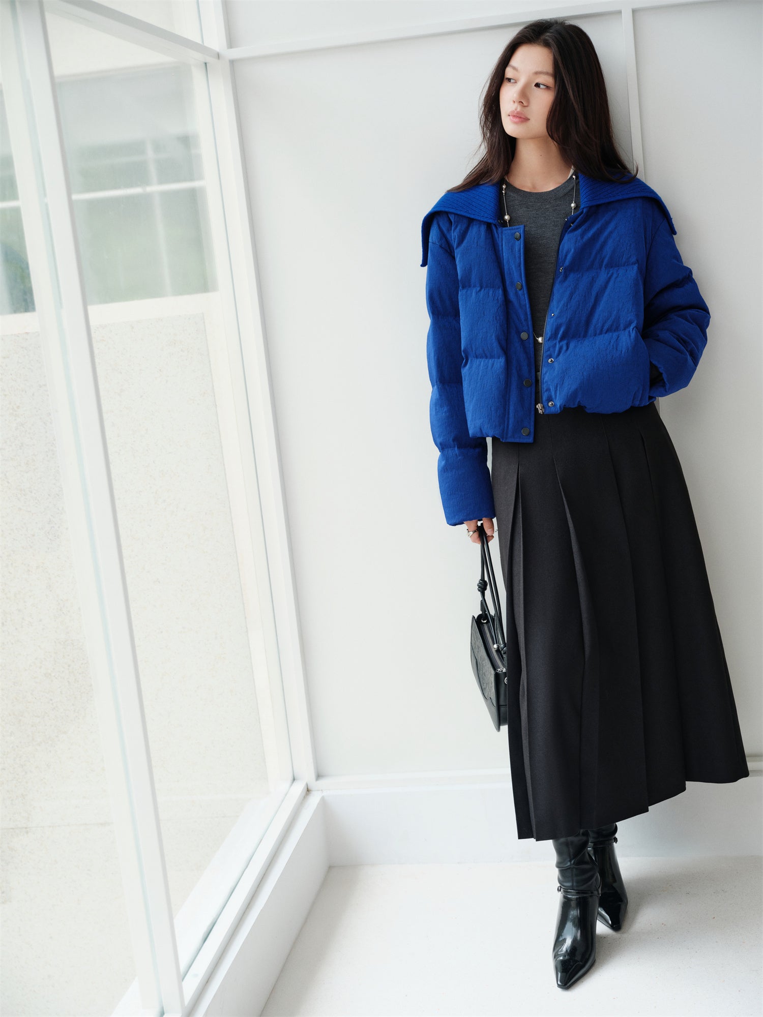 EP YAYING Velvet-Texture Pleated Down Jacket EGKIAY129AB