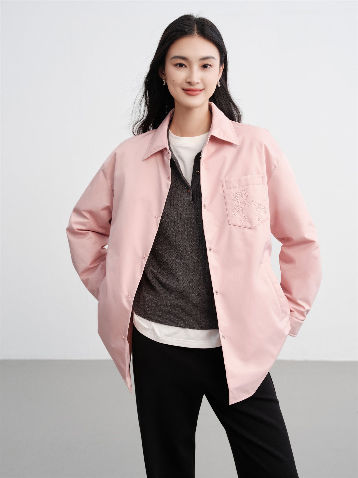 EP YAYING Silk Jacquard Stand-Collar Goose Down Coat