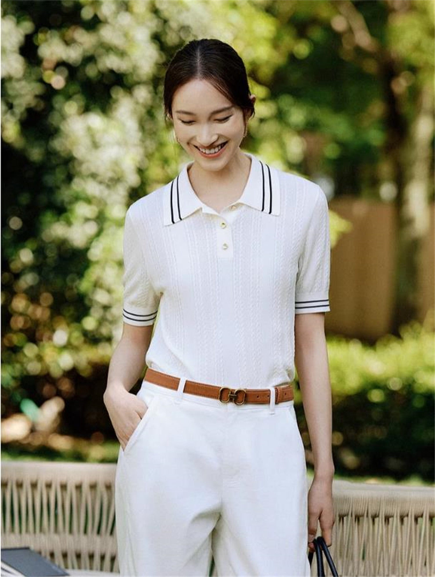 EP YAYING Collared Knit Base Layer Top EGKAA9547BW